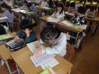 6年生の4時間目は国語の授業でした。「成長を振り返って未来へ進もう」の授業です。行事や習い事など、これまで経験したことから何を学んだのかということについて作文をしています。「自然体験教室で外遊びの大...
