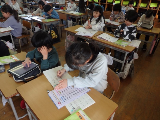 1年生の5時間目は1人1人が漢字や計算のドリルを進めていました。先生から指定されたページをやり終わった子はiPadでさらにドリル学習を進めたり、日本地図パスルに取り組んだりしていました。今日は「教え...