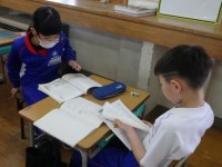 2年生の1時間目は国語の授業でした。「お手紙」という物語の学習です。まずは2,3人のグループになって丸読みをしました。その後、物語全体を4つの場面に分け、それぞれの場面がどういうお話なのかを読み取り...
