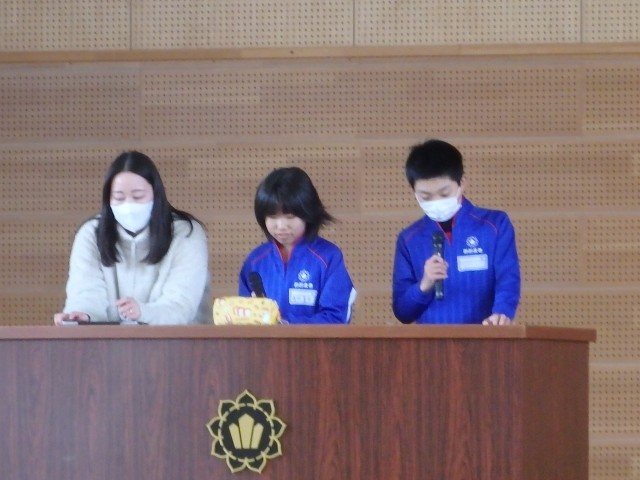 4年生は2部構成で総合と国語の発表を行いました。前半は総合で、「魚野の里」と「八海山あまさけ工場」を見学して分かったことを劇にして発表しました。シナリオやスライド、小道具も全て自分たちで作りました。...