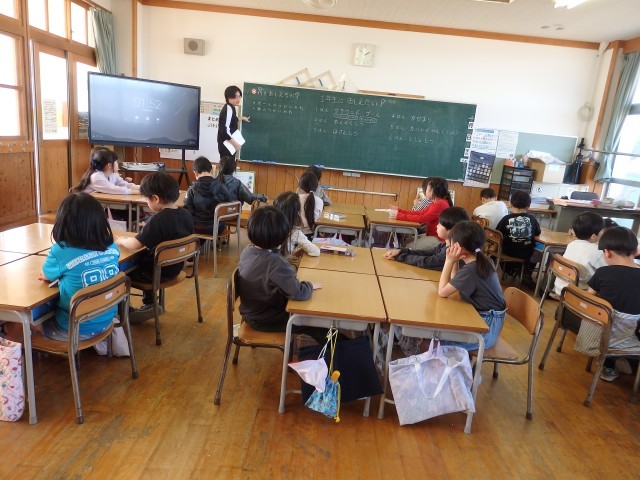 4年生の4時間目は学活の授業でした。学級委員になった2人がみんなの前で決意発表をしていました。「先生に言われないでも、自分たちで行動できるクラスにします」と力強く話してくれました。担任の先生の「学級委...