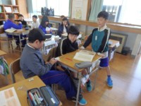 1年生の2時間目は学活の授業でした。「いいねカード」が配られました。学校生活の中で先生たちが子どもたちのいい姿、頑張っている姿などを見つけたときにあげるシールを貼るカードです。カードを後ろの人に手渡す...
