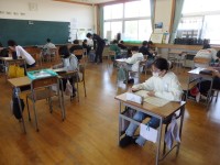 3年生の3時間目は社会の授業でした。教科書に載っている町の様子が描かれているイラストを見て、どんな建物や人がいるのかノートに書き出していきました。「3年生だから3つ」ということで、3つ書き出した子から...