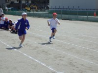 5,6年生の5時間目は合同で体育の授業でした。久しぶりの100m走で、タイムを計りました。歯を食いしばって一生懸命に走る姿がいいですね。去年よりもタイムは伸びたでしょうか。