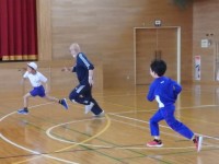3年生の2時間目は体育の授業でした。まずはウォーミングアップで「ふえオニ」です。先生も入って、子どもたちを追いかけていました。体育館じゅうをたくさん走り回った後、さらにリレーで走りました。4チームに分...