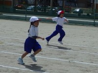 1,2年生は3時間目に合同で体育を行いました。50m走のタイムを計りました。1年生にとっては初めての50m走ですね。遊びに来ていた保育園の子たちが「頑張れー!」と応援してくれていました。