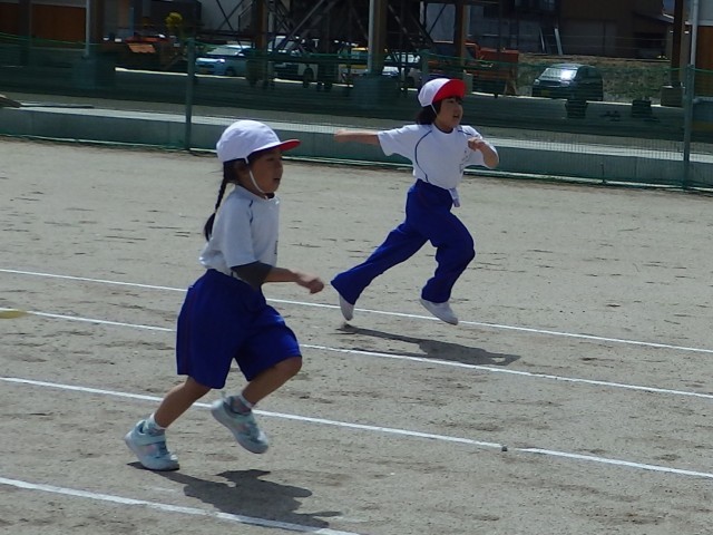 5,6年生の5時間目は合同で体育の授業でした。久しぶりの100m走で、タイムを計りました。歯を食いしばって一生懸命に走る姿がいいですね。去年よりもタイムは伸びたでしょうか。