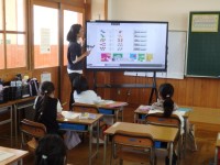 6年生の4時間目は国際科の授業でした。「道案内」の学習です。まずは町の中にあるいろいろな施設の名前を発音する練習をしました。ALTの先生の後に続いて発音したり、「キーワードゲーム」という活動で何回も発...