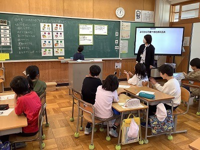 4年生が栄養教諭から食についての授業を受けました。今回の授業は「食べ物をよく噛もう」がテーマでした。4年生は、どうすればよく噛んで食べることができるのかを真剣に考えていました。グループごとにたくさんの考えを発表する4生でした。