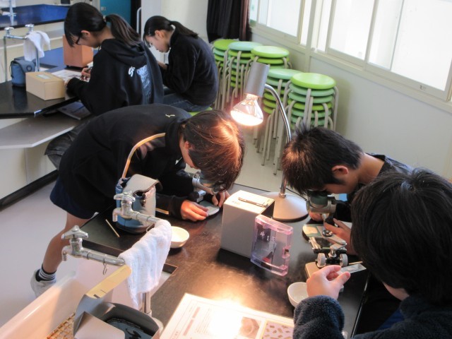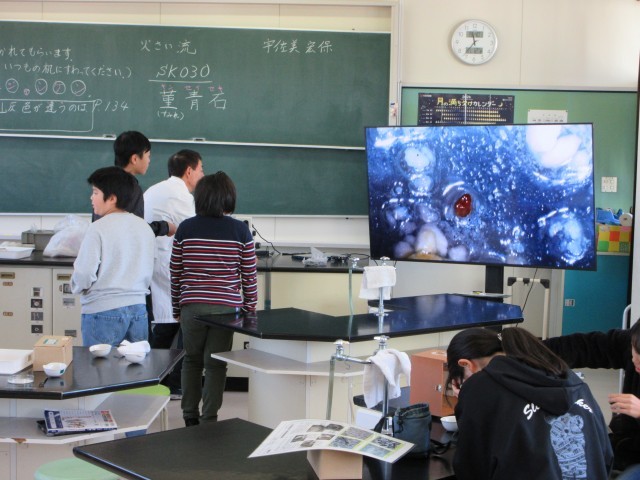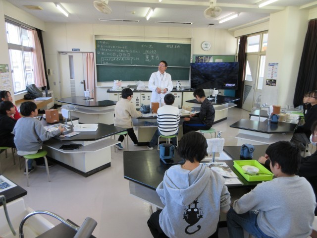 12日(水)3・4限に、南魚沼理科教育センターの宇佐美先生をお招きして、火山灰の観察を行いました。火山灰の特徴を教えていただいたり、火山灰に含まれている珍しい菫青石(きんせいせき)などを探して観察したりしました。