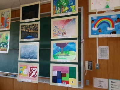 子どもたちが描いた作品を展示しました。どの作品を観ても、とっても素敵な作品ばかりです。構図、彩色などそれぞれが工夫した力作です。1階家庭科室前廊下、3階図工室に展示をしています。ご来校の際、ゆっくりと鑑賞してください。