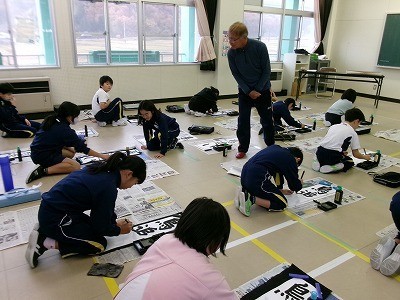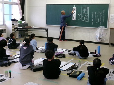 各学年、書き初めの練習が始まりました。今年度から地域の「習字の達人」である、青木様から指導をしていただくこととなりました。筆の持ち方や使い方、書くスピード等を丁寧に教えていただきました。初めての練習でしたが、青木様からの教えをきちんと頭に入れながら、子どもたちは真剣に取り組みました。年明けには書き初めのコンクールがあります。入賞をめざして、全員で頑張ります。