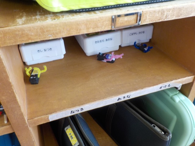 1年生は、教室の隙間を見つけて、つくったすきまちゃんをそっと置きました。かわいらしいすきまちゃんが教室のあちこちに!