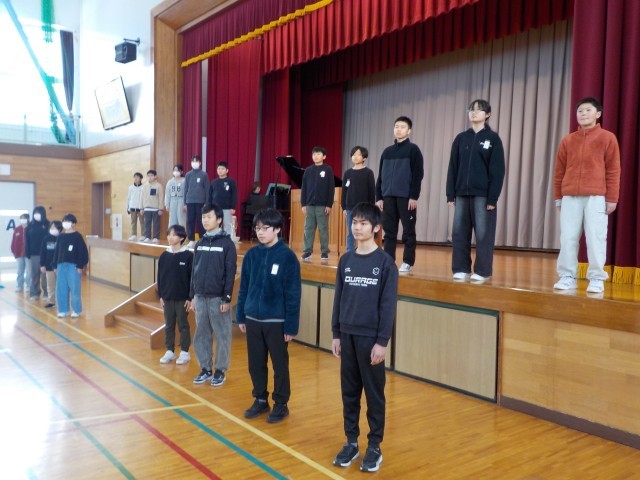 卒業式の全体練習をしました。入退場や卒業式授与、門出の言葉の練習をしました。1時間近くの練習でしたが、さすが上田っ子のみんなです。最後まで静粛に、集中して練習や動きの確認ができました!!特に、練習に臨む態度が素晴らしかったです。金曜日に予行練習をします!!