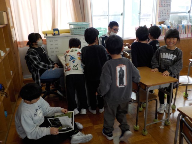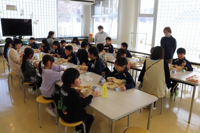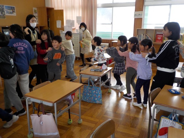 うえだ保育園の年長の皆さんが、小学校に給食体験に来ました。今日は、給食を食べるだけでなく、学校内の見学をしたり、小学生のお兄さん、お姉さんと交流したりできました。まずは、5年生の担任の先生や子どもたちとじゃんけんをして楽しみました。そして、いよいよ4月から活動する1年生教室へ。教室の様子を見たところで、2年生がゲームの招待に来ました!じゃんけん列車をしたり、お寿司屋さんで買い物を楽しんだりしました。みんな笑顔で遊ぶことができて何よりでした。4月の入学式、上田小学校のみんなで楽しみに待っています!!