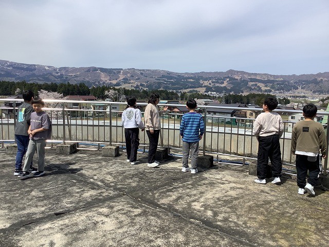 3年生から新しく社会科の授業が始まりました。早速、屋上に上がり、地域を見渡しました。初めて屋上に上がった3年生からは、「思ったより高い!」「かなり遠くまで見える!」等の声が聞こえてきました。今後、総合的な学習とも絡めて学習を進めていきます。