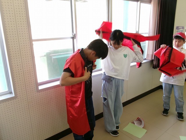 運動会に向けて、赤白応援団の顔合わせがありました。応援団として各団をまとめるにあたり、応援担当の先生から注意事項の説明がありました。すでに各団とも気合いが入っているようです。衣装合わせ後、各団で今後の役割分担も決めました。さて!今年は赤白どちらが勝利を収めるでしょう?今から楽しみです。