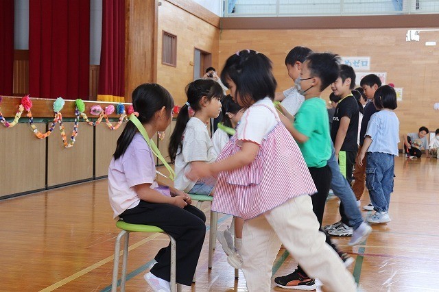 1年生を迎える会がありました。6年生を中心にして2年生から6年生が企画をしたり、準備をしたりしました。会の中で「1年生クイズ」もあり、とても楽しい会となりました。2年生からの手作りのメダルをもらった1年生。満足そうな1年生でした。これから2年生から6年生のお姉さんやお兄さんと、もっともっと楽しい学校にしていきましょう!