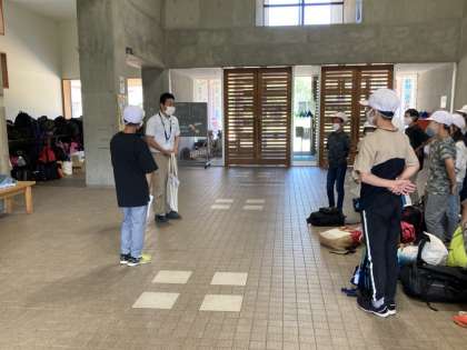 到着式の様子です。常に次に使う人が気持ちよく使えるよう考える「思いやりのリレー」を施設の方から学んでいます。