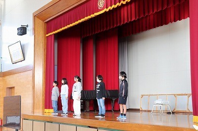 今回の児童朝会は、図書委員会による企画でした。図書室にあるたくさんの本から問題が出されました。全校の子どもたちは○か×を選択して移動します。正解が発表されると、子どもたちから大きな歓声が聞こえてきます。なかなか難しい問題もありました。図書委員会のみなさん!楽しい企画をありがとうございました!
