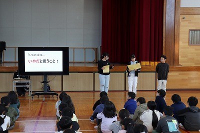 児童会各委員会が役割分担をして、いじめ見逃しゼロ集会を行いました。「友だちを大切にしよう!」「自分たちで上田小学校をより良くしていこう!」のをテーマに開催しました。最後に、仲間づくりということで「じゃんけん列車」をしました。みんなが楽しく過ごせる学校をめざしていきます。