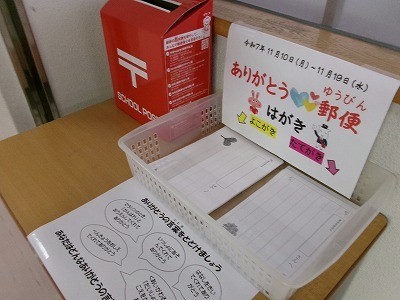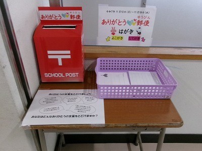 児童会保健委員会が中心となって、「ありがとう郵便」のポストが設置されました。2階、3階の廊下に設置されています。「ありがとう」と声をかけてくれた友だちに郵便を出します。ポストの中を覗いてみると、たくさんの手紙が入っていました。いろいろなところ、場面で「ありがとう」が飛び交っていることが分かります。「ありがとう」がたくさん聞こえる学校を目標にしていきます。
