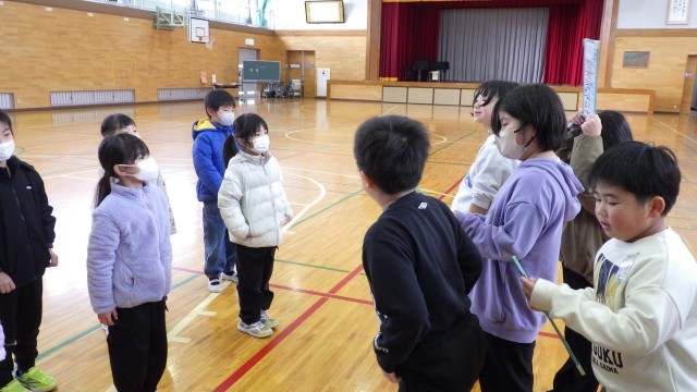 1・2年生が、体育の時間で初めて大縄跳びに挑戦しました。1列に並んで、8の字に跳んでいきました。最初は、床に置いた大縄を飛び越えるところから始め、徐々に高くして飛び越えていきました。最後には、普通に回して飛び越えることにチャレンジ!たくさんの子が飛び越えていきました。たったの1時間で、みんな相当レベルアップしました!