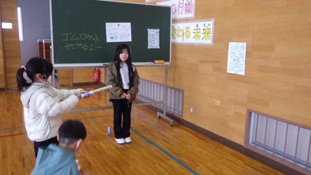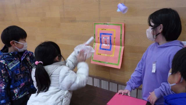 2年生が、1年生を「おもちゃバラダイス」に招待しました。体育館で、手作りのいろいろなおもちゃのお店を開き、1年生に楽しんでもらいました。1年生と2年生でたくさん交流して、ますます仲良くなっています!