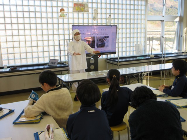 6年生が、キャリア教育で上田小学校の上村調理員さんからお話を聞かせていただきました。具体的な仕事の内容や上村調理員さんのお仕事の経歴、普段気をつけていることなど、教えていただきました。6年生の子どもたちには、ランチルームで食べた給食のことを、いつまでも覚えておいてほしいという願い・思いを最後に伝えてくださいました。