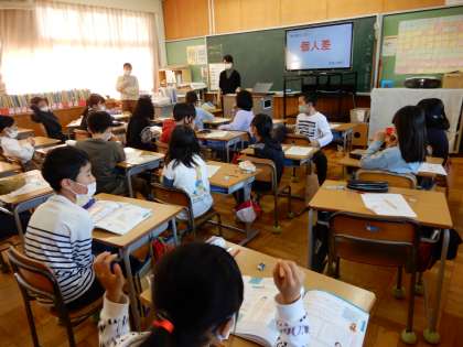 5年生は、国際科の学習で、「日本のことを英語で紹介しよう!」という学習をしています。
