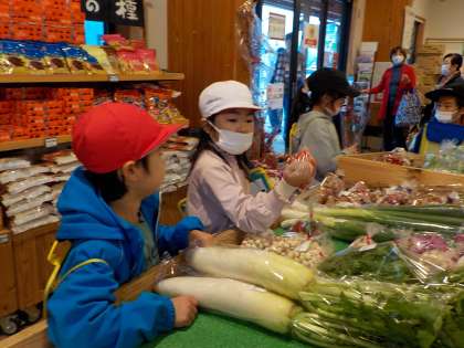 立ち並ぶビニールハウスにびっくり、野菜の種類にびっくりの2年生でした。ゆきあかりで売られているおいしそうな野菜を実際に買ってみました。地元のおいしい野菜を買えたこと、初めて買い物できたこと、貴重な体験でした。ありがとうございました。
