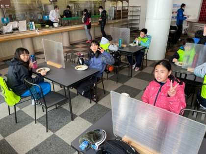 授業後には、レストランで温かいカレーを食べ、学校に帰ってきました。到着後、すぐに体育館で遊ぶ子どももいて、子どもたちのパワーを感じました。