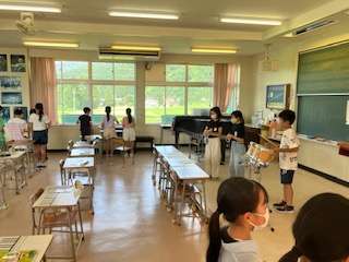 今日は牧之記念館館長、笛木孝雄様から卯年祭についてお話していただきました。今年は4・5年生が聞かせてもらいました。上田地区では8月に卯年祭が行われます。12年に1度のこの祭の由来や、水害から暮らしを守るために神様にお願いする行事を通して地域が一体となったことなど、初めて知ることがたくさんありました。伊勢へのお札をもらう旅で客死した村人のお墓を訪ねた時のエピソードも聞くことができました。夏休み中ですが、参加できるといいですね。
