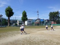 1年生の体育学習の様子です。「なげあそび」をしています。ボールを的に向かって投げます。なかなか当たりませんでしたが、回数を重ねるうちにどんどんとボールが的に当たるようになってきました。楽しそうに活動...