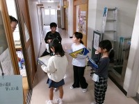 3年生は社会科の学習で防災設備について学んでいます。学校内にはどんな防災設備があるのだろうか?ということで、校内の防災設備を調べることにしました。まずは職員室です。防災扉が閉まった時、ブザーが鳴りそ...
