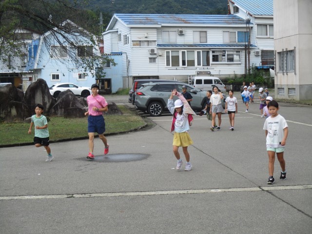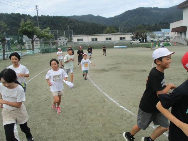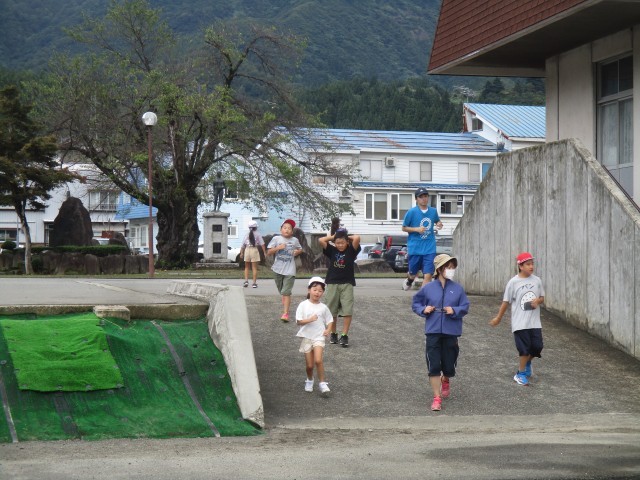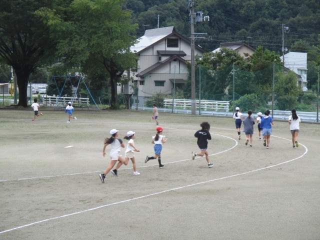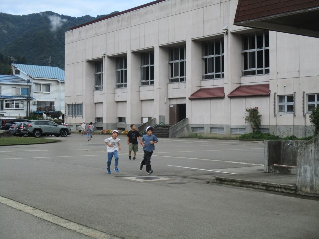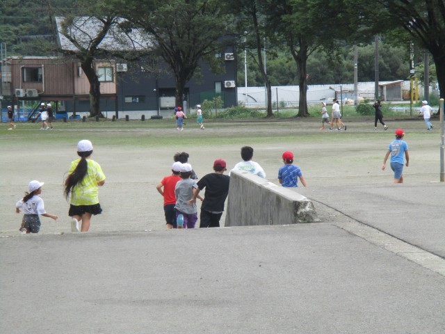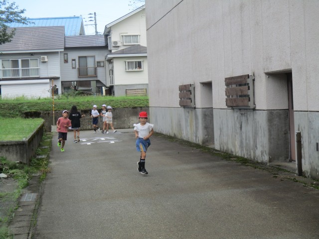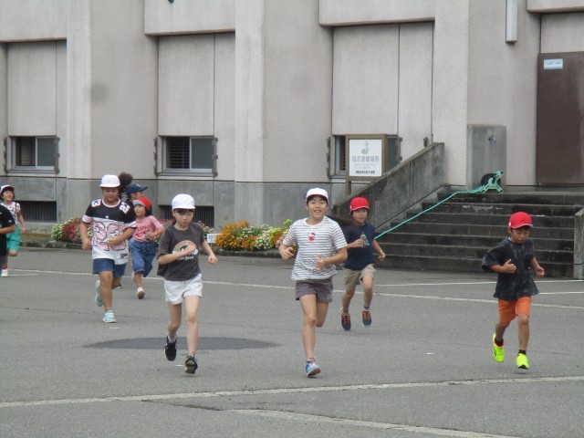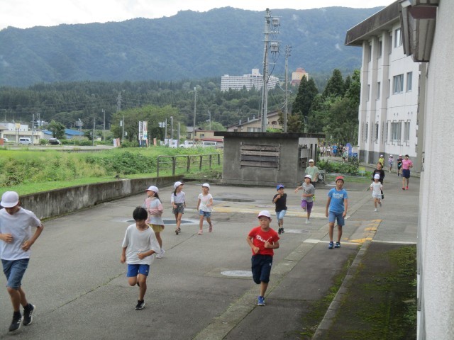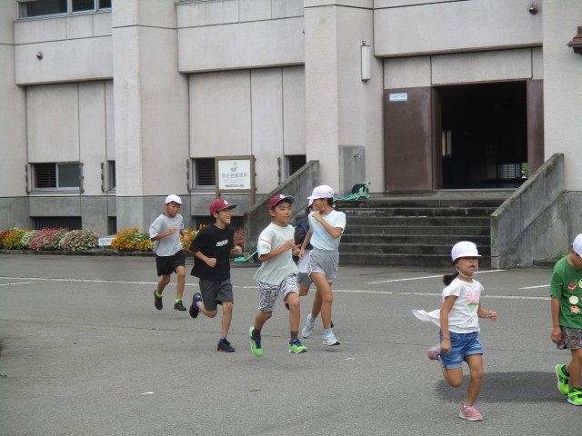 前回に比べて涼しい天候でもあり、走る距離を伸ばすことができた子が多いようです。「やったー!4周走れた。」「5周目まで行ったよ!」「○○ちゃんよりも、たくさん走れた!」など、充実した表情で校舎内へと戻っていきます。
