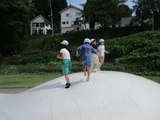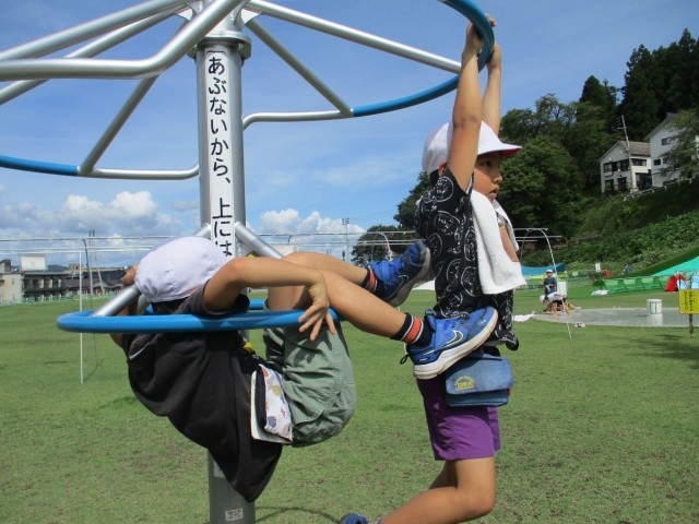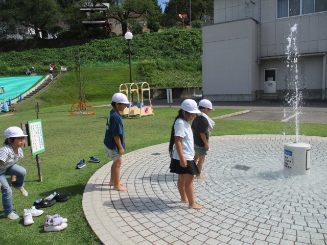 噴水や屋外にある遊具、屋内にもボルダリングや複数の遊びを満喫でき、あっという間の1時間30分でした。「また来たい。」「今度は家の人と絶対来る。」など、楽しげな表情で語ってくれる子どもたちでした。