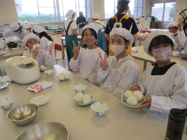 5年生の子どもたちは、教えていただいたポイントに気をつけ、三角型のおにぎりから、アレンジを加えていく子もいました。美味しいおにぎりに舌鼓を打ち、満足げな子どもたちでした。