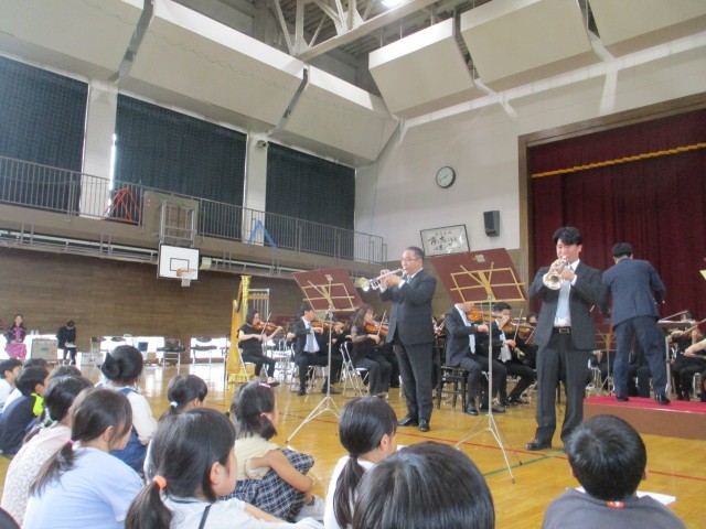 公演を終えた後にお帰りになる、保護者、地域の皆様、学校関係者、そして、当校児童の笑顔が、本日の公演のすばらしさを物語っていたように思います。遠路はるばるおいでいただいた大阪フィルの皆さん、本当にありがとうございました。心より感謝申し上げます。