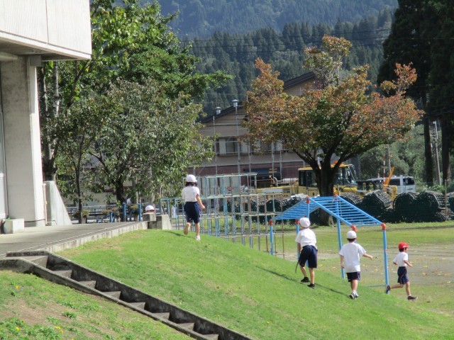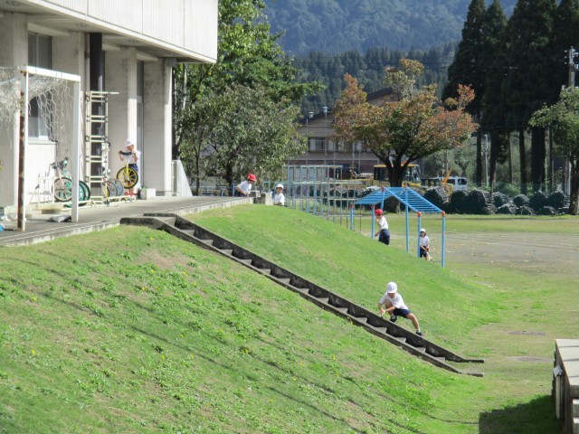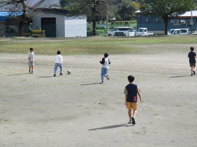 今日は爽やかな秋晴れです。20分休みになると、子どもたちは元気にグラウンドへ駆け出していきます。サッカー、一輪車、ハンドベースボール、ブランコ、ジャングルジム・・・など、思い思いに遊びを楽しんでいます。