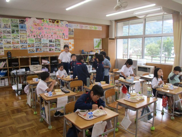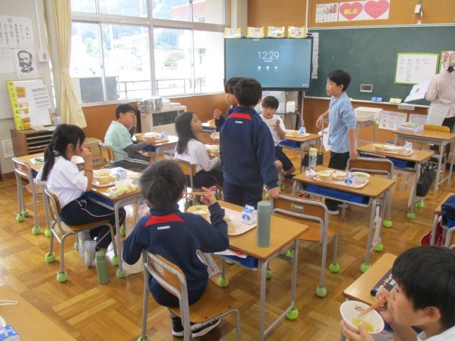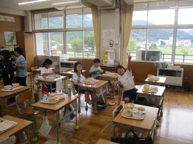 唐揚げやリンゴゼリーなど、お替わりじゃんけんも大盛り上がりの3年生教室でした。
