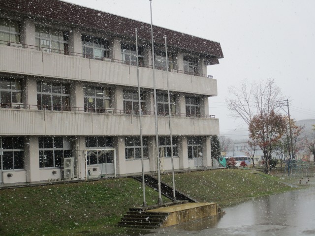 記念すべき、今年度の「初雪」です。子どもたちも、今冬に向けて、いろいろな思いを馳せながら、空を見上げていました。