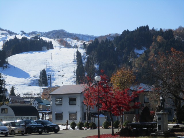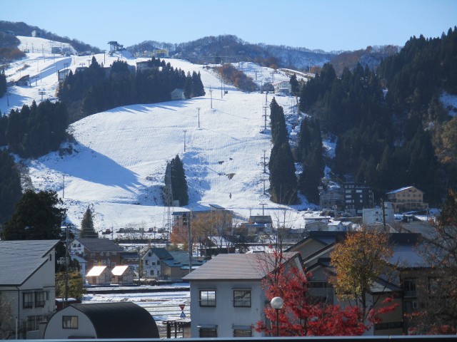 グラウンドの雪はあっという間に消えてしまいましたが、周囲の山々、そして、石打丸山スキー場のゲレンデには雪が残っています。