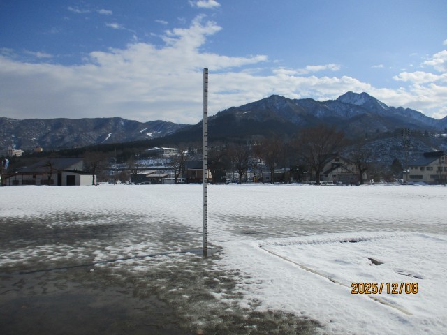 12月の2週目となりました。今日は良い天候ですが、先週末に降った降雪が、グラウンドには見られます。