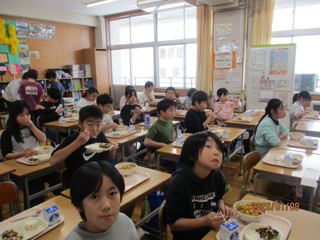 4限を終えた子どもたちは、いち早く給食準備に取りかかります。今日は、子どもたちに大人気のカレーということで、待ち遠しいようです。各学年教室を見ても、「お替わりカレー」「大盛りカレー」にする子が多く、あっという間に食缶の中はからっぽでした。おいしい給食を食べて腹ごしらえをして英気を養ってください。