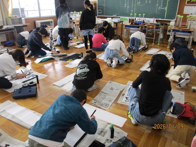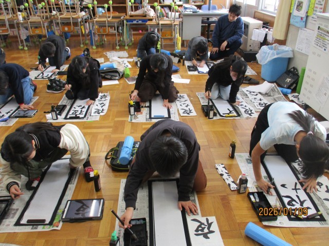 新しい年の始まりにふさわしく、1月9日、校内書き初め大会を行いました。