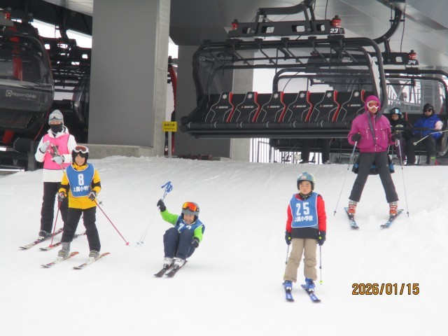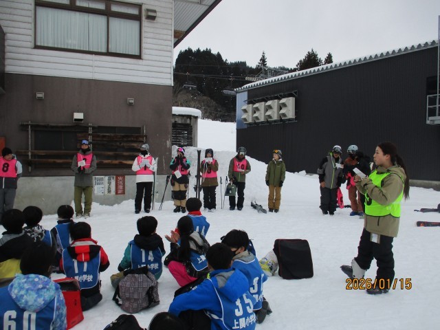 4~6年生の全児童が、「アルペンスキー」又は「クロスカントリースキー」のどちらかに所属し、給食後には、「石打丸山スキー場」又は「欠之上クロスカントリースキーコース」へ移動し、技能や体力向上を図る活動です。また、6年生は、南魚沼市小学校親善大会に参加します。