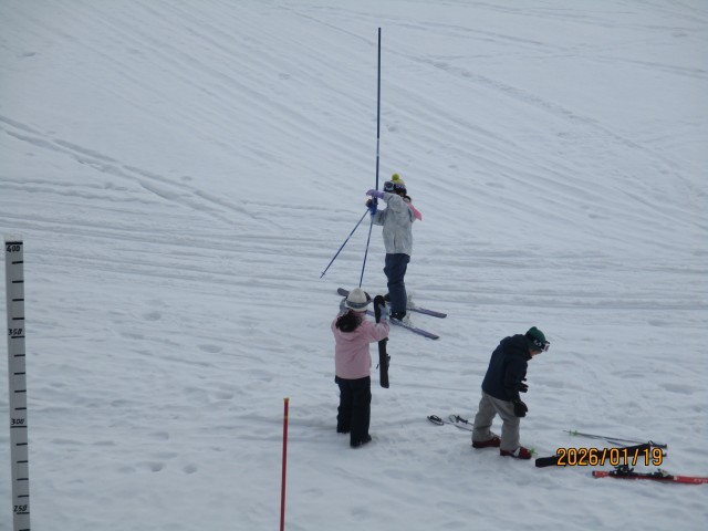 週明けの月曜日。朝の気温はマイナスで、しみ渡りができるくらい雪面はカチカチに凍っていましたが、3限になる頃には気温も上がり、少し雪が緩んできました。