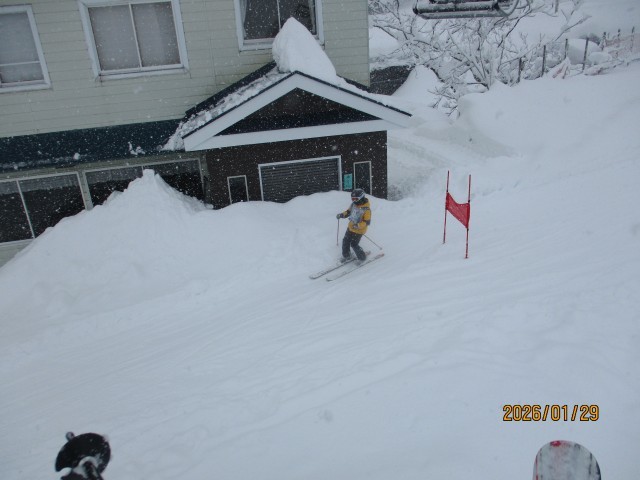 今日は、寒波の影響で雪の降り続く冬らしい日です。子どもたちが滑った後の雪面も、数分後には新雪が降り積もるほどの降雪量です。