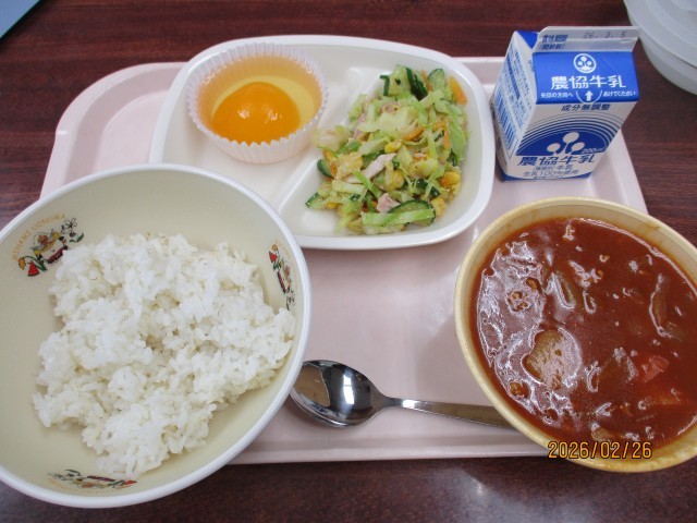 2/26(木)今日の給食「ハヤシライスは、なぜ『ハヤシ』ライス?」